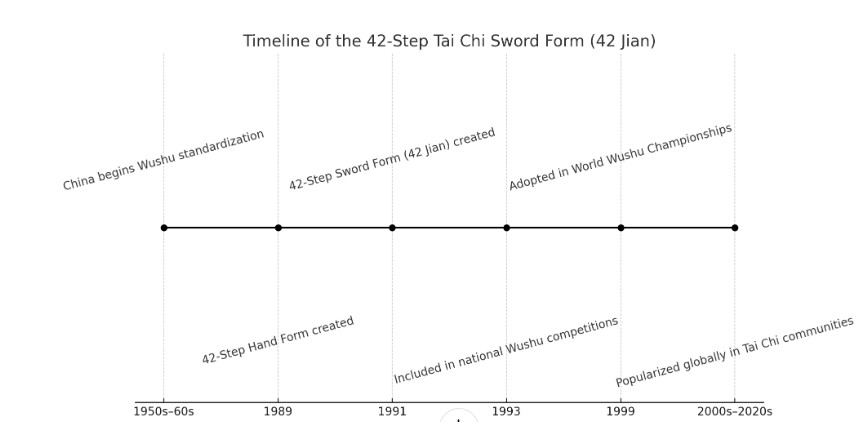 The 42 Sword Tai Chi Form (also known as Tai Chi 42 Sword or 42-Step Taiji Jian) is a standardized Wushu-style Tai Chi sword routine developed in China to combine the essence of major traditional Tai Chi styles with sword techniques. It was created in the 1990s as part of the competition-style Tai Chi forms, similar to the 42 Form Hand.